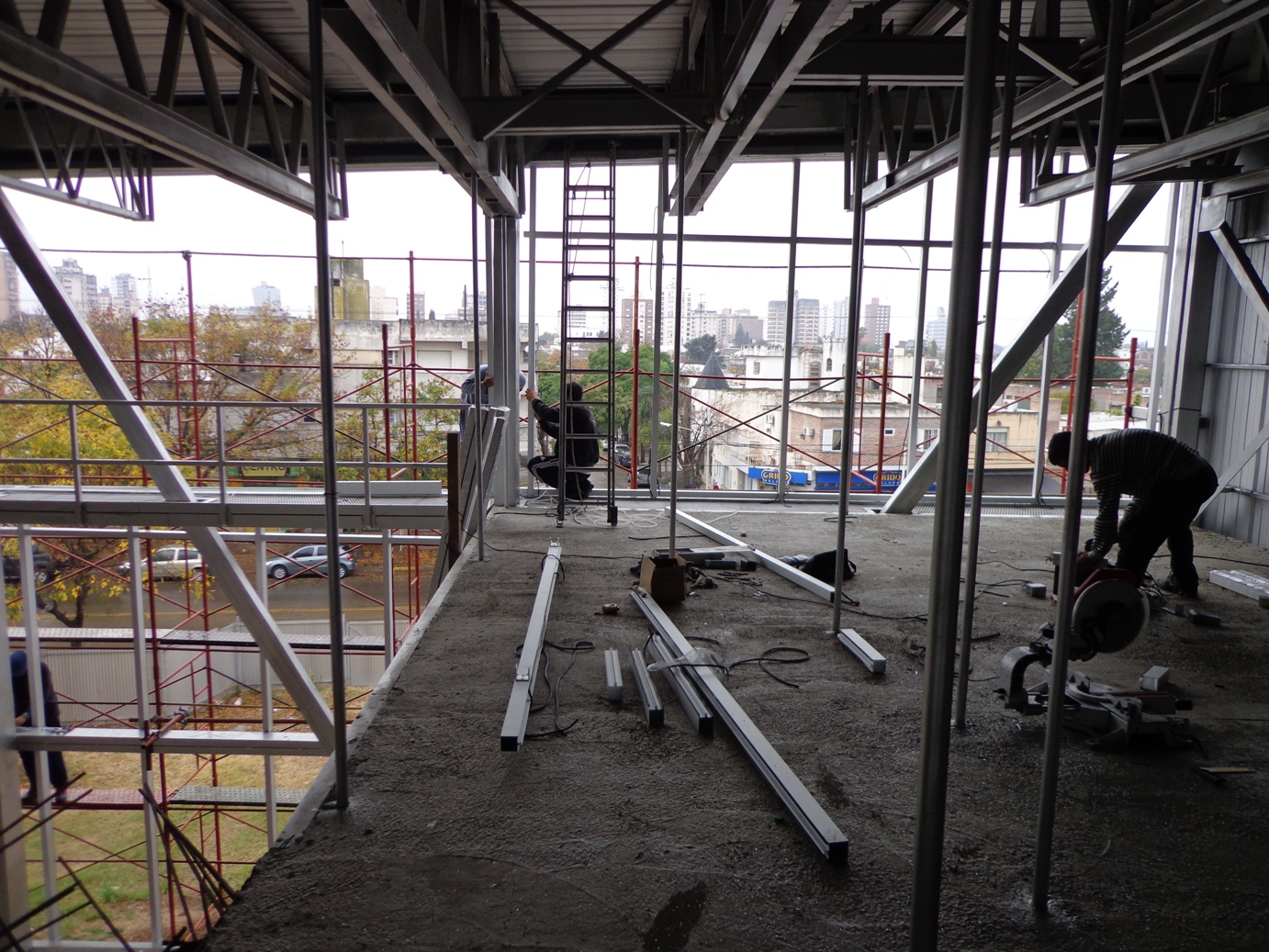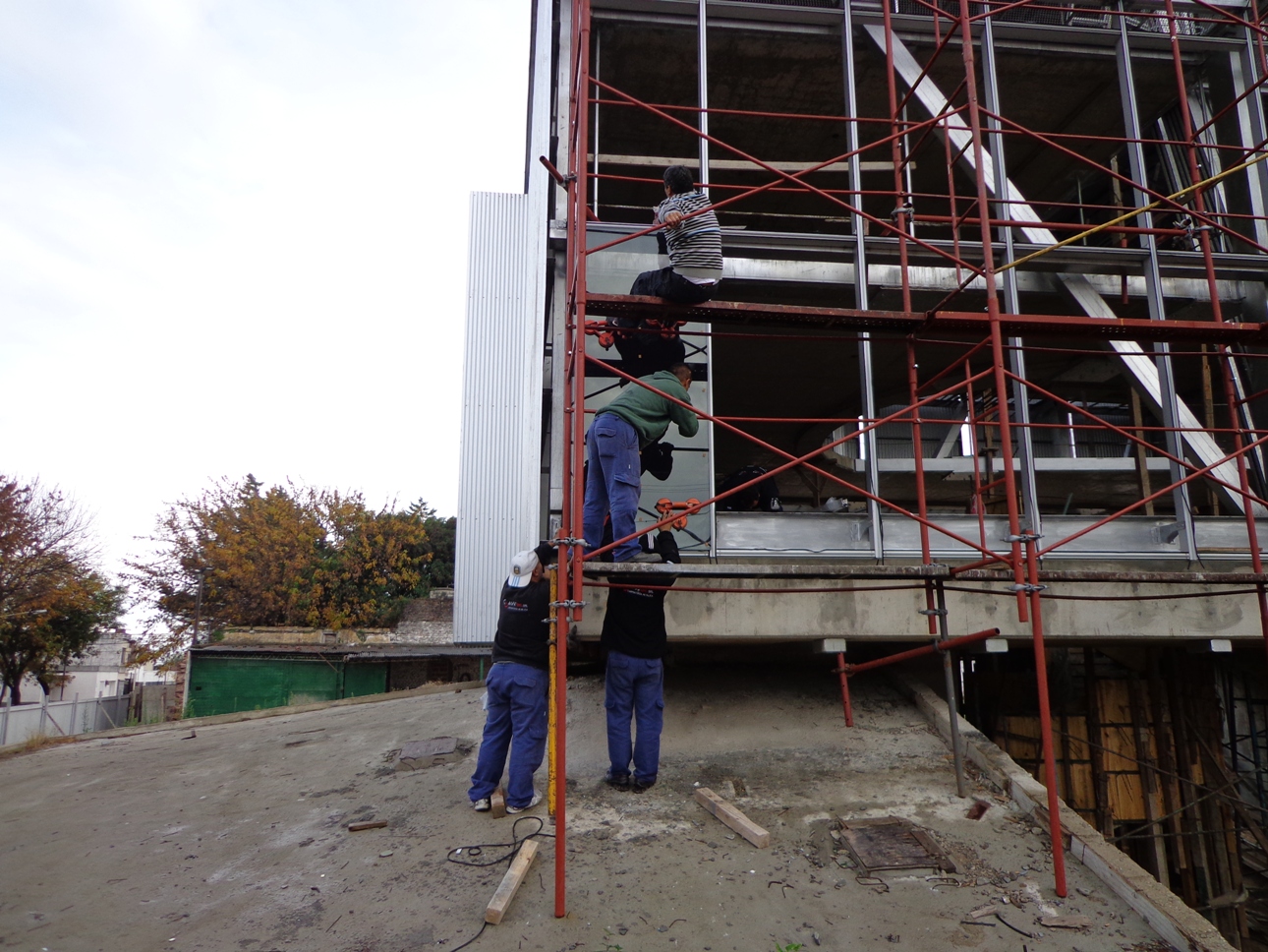 Terminada colocacion de andamios y estructura de aluminio comienza el montaje de vidrios